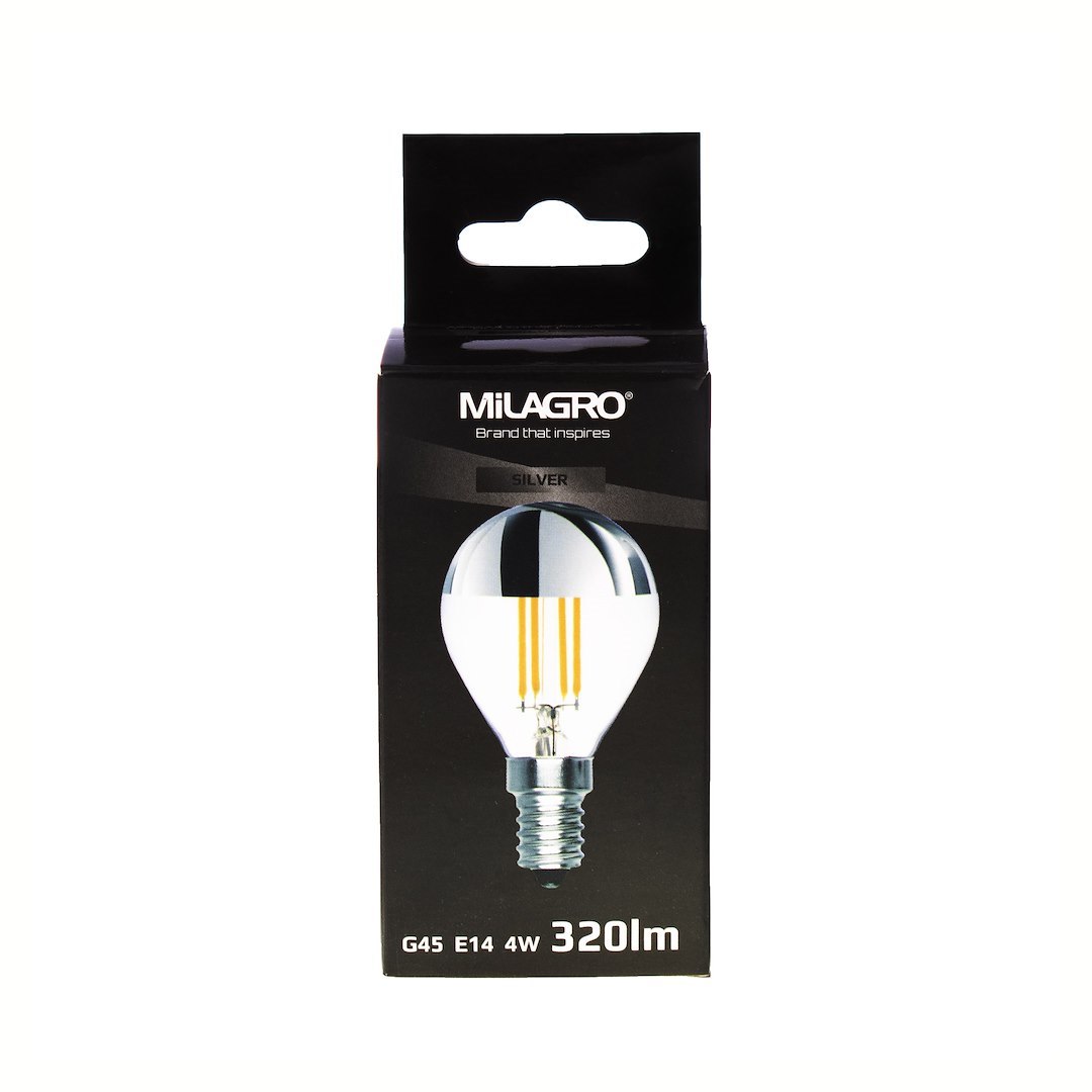 Bec LED filament 4W G45 E14 2700K TOP SILVER