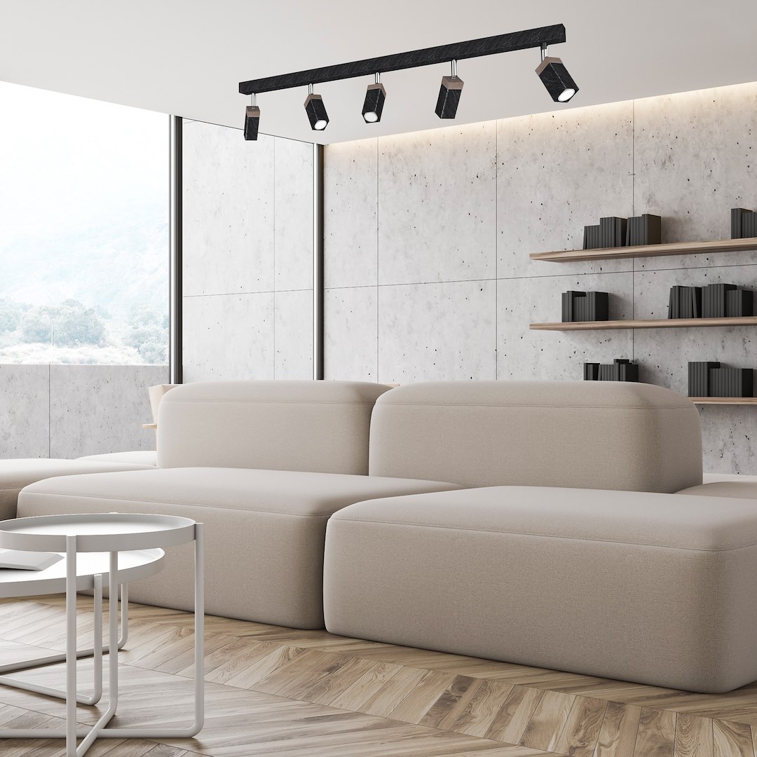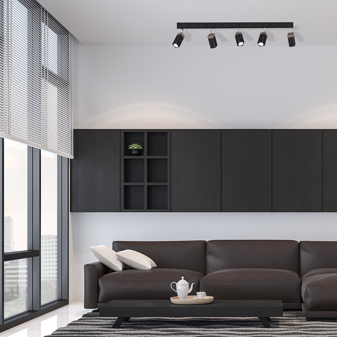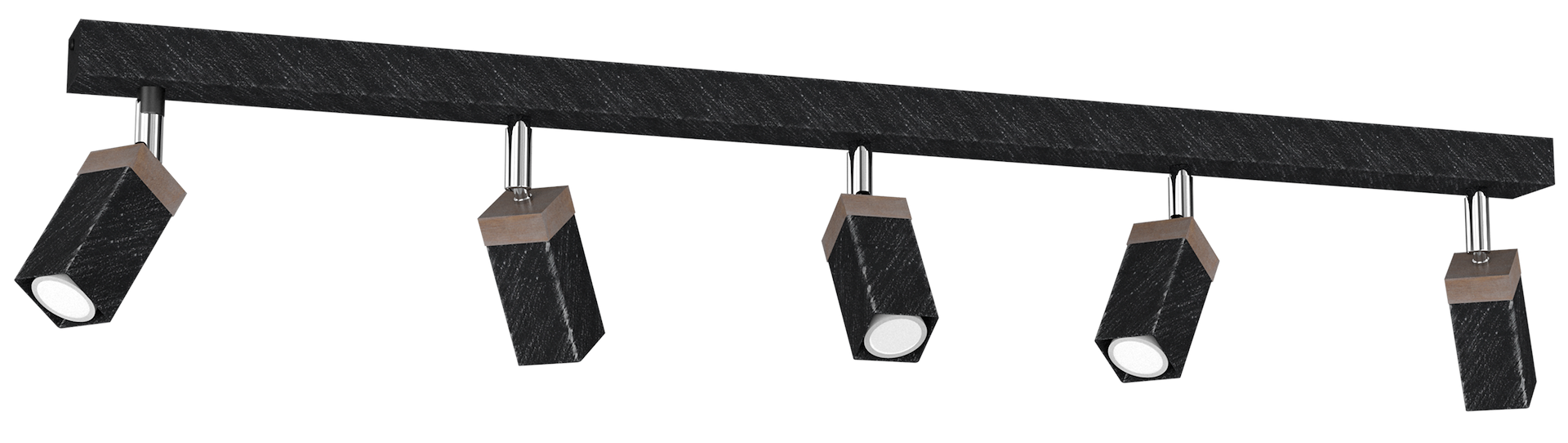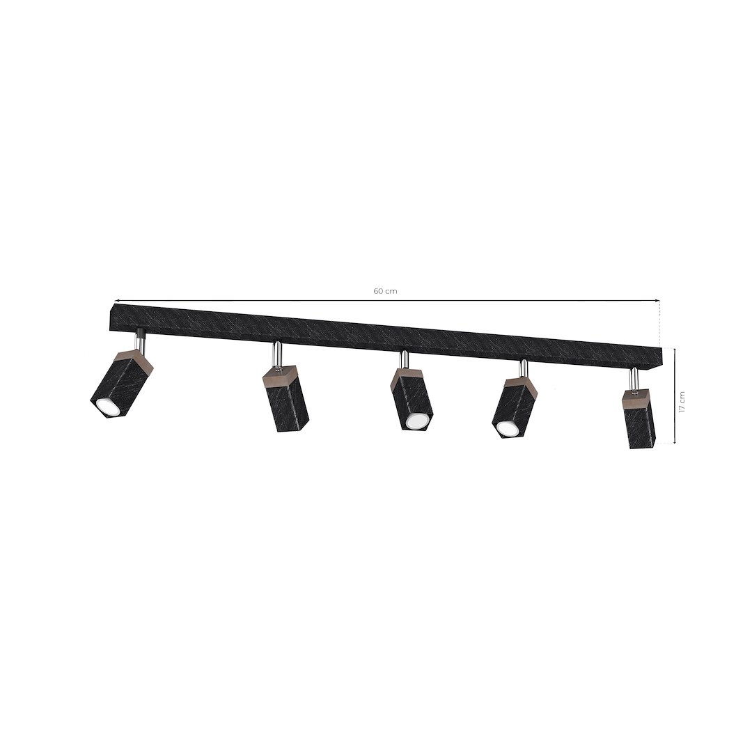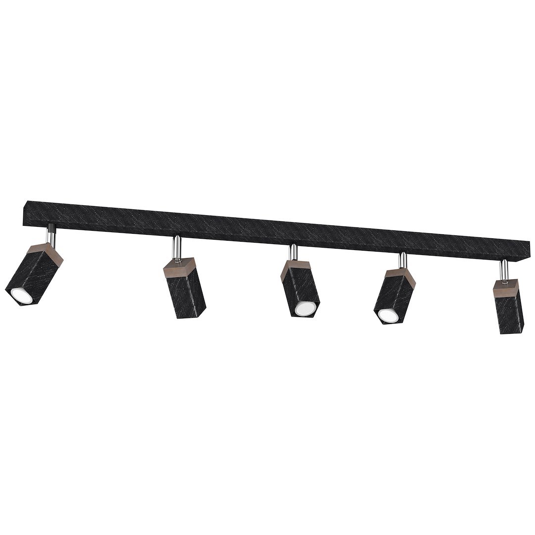 Plafonieră Solo Sawn, negru/lemn patinat, 5X Mini GU10